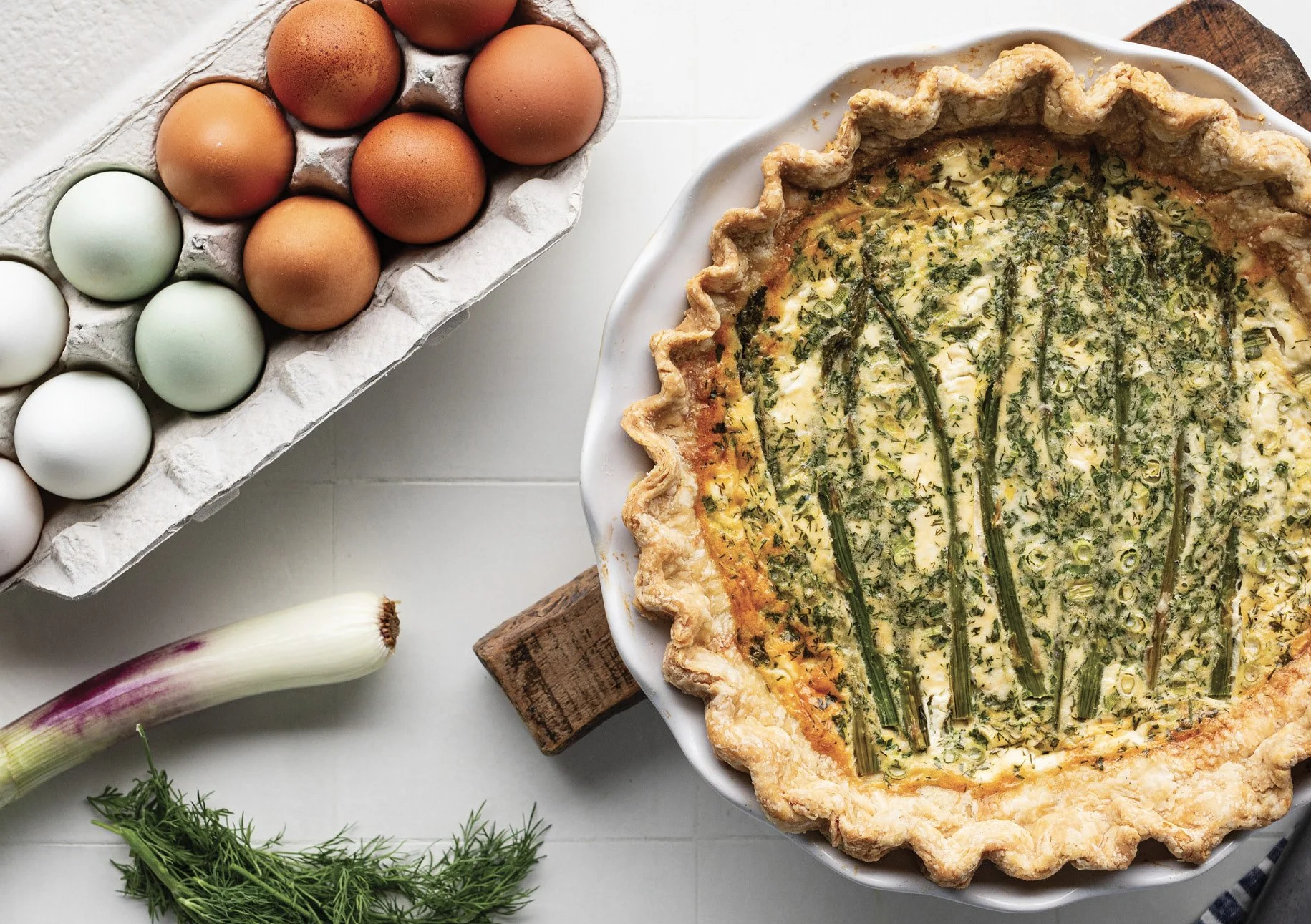 vegetables. Pour filling into crust. Arrange asparagus spears on top for a decorative finish.